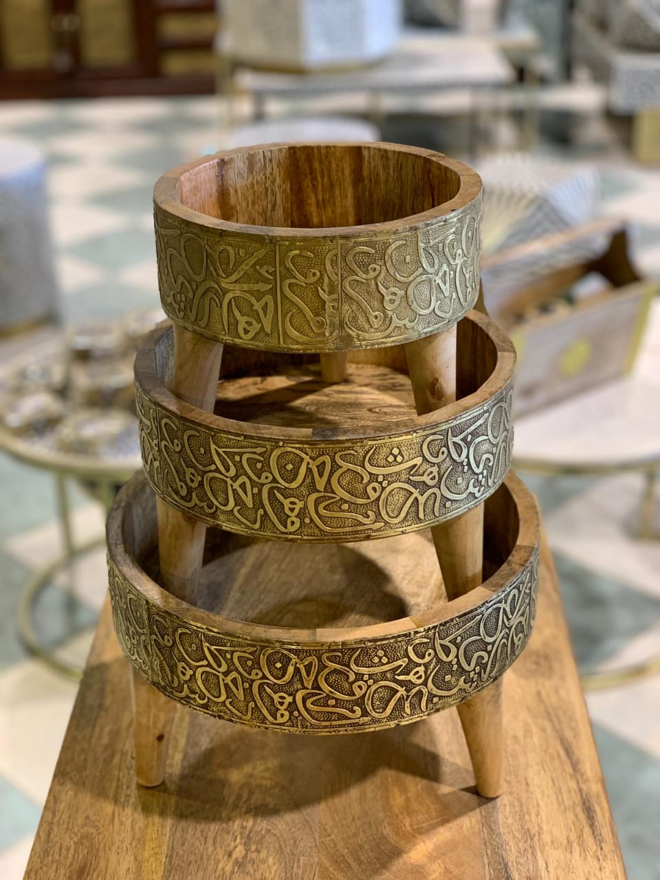 مجموعة من 3 اواني فاخرة بخامات خشبية عالية الجودة عملية بتصميم كلاسيكي راقي.